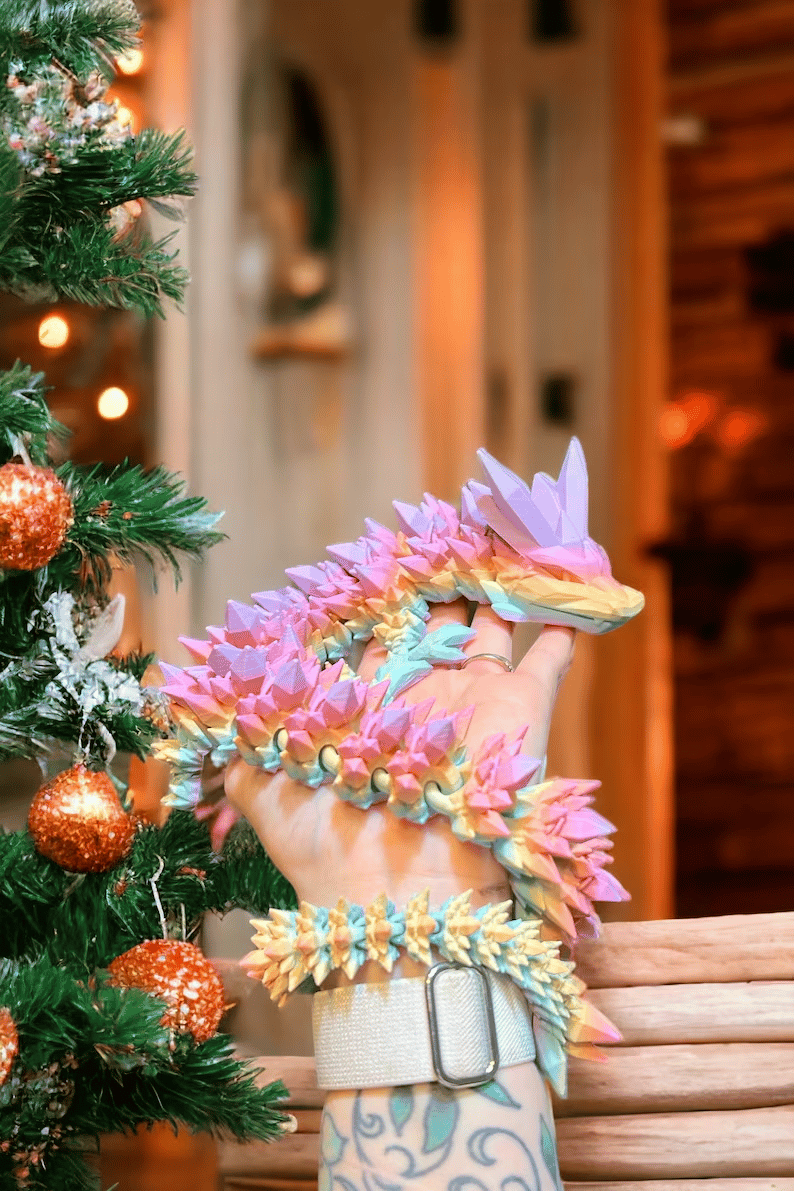 This dragon is easy to take with you on the go. Use it at home, school or the office!Each segment is articulated and 3D printed from the ground up to create a precise, strong but flexible joint design that will not come apart when played with.